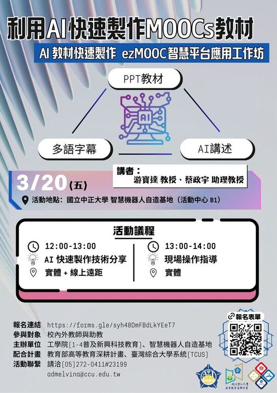 利用AI快速製作MOOCs教材 ——「AI教材快速製作:ezMOOC智慧平台應用工作坊」